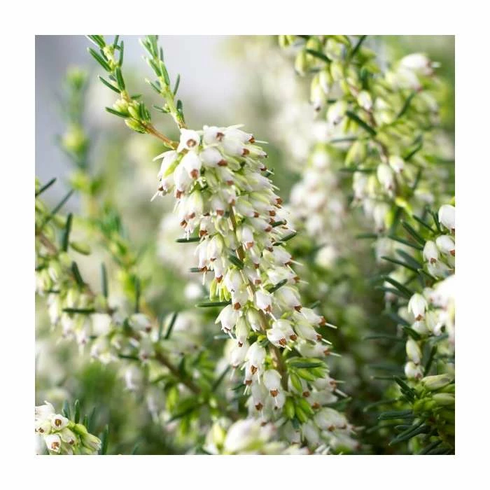 Erica x darleyensis ‘White Perfection’ is a gorgeous variety of Heather forming racemens of intricate, pure white blooms from winter to spring – perfect for adorning the chilly landscape! This shrub is importantly evergreen too, where the fine, needle like leaves will fill out your garden’s borders nicely. Hardy even in very harsh winters, White Perfection can be grown in variety of settings; such as rock gardens, in containers, or as a ground cover plant.