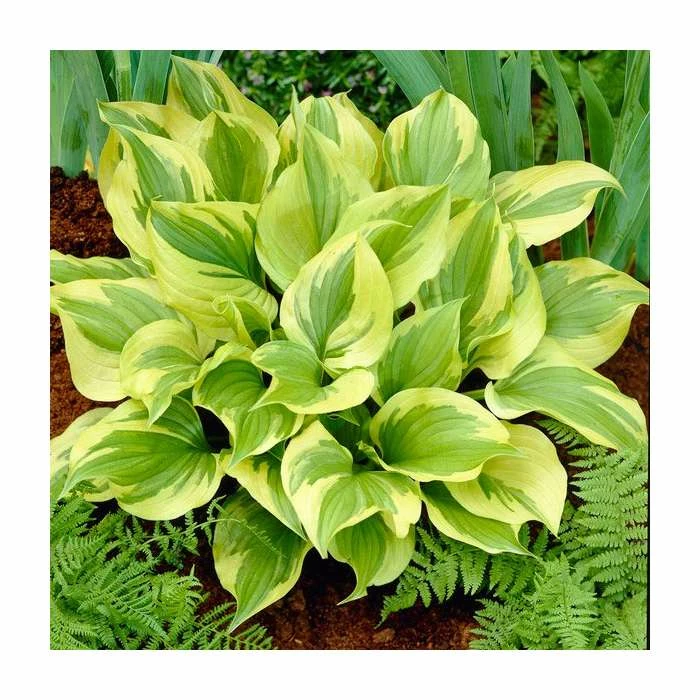 Hosta ‘Marmalade on Toast’ will bear leaves that carry swirls of lime green, which are outlined by creamy yellow margins. Producing white, bell-shaped flowers during the summer months, this Hosta will also attract plenty of pollinators into your garden.
